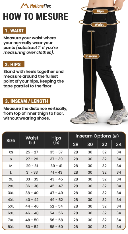 Our size chart is meticulously crafted to match your measurements, ensuring each pair of pants fits just right. See the guide below for how to measure.